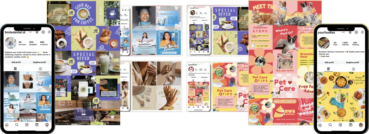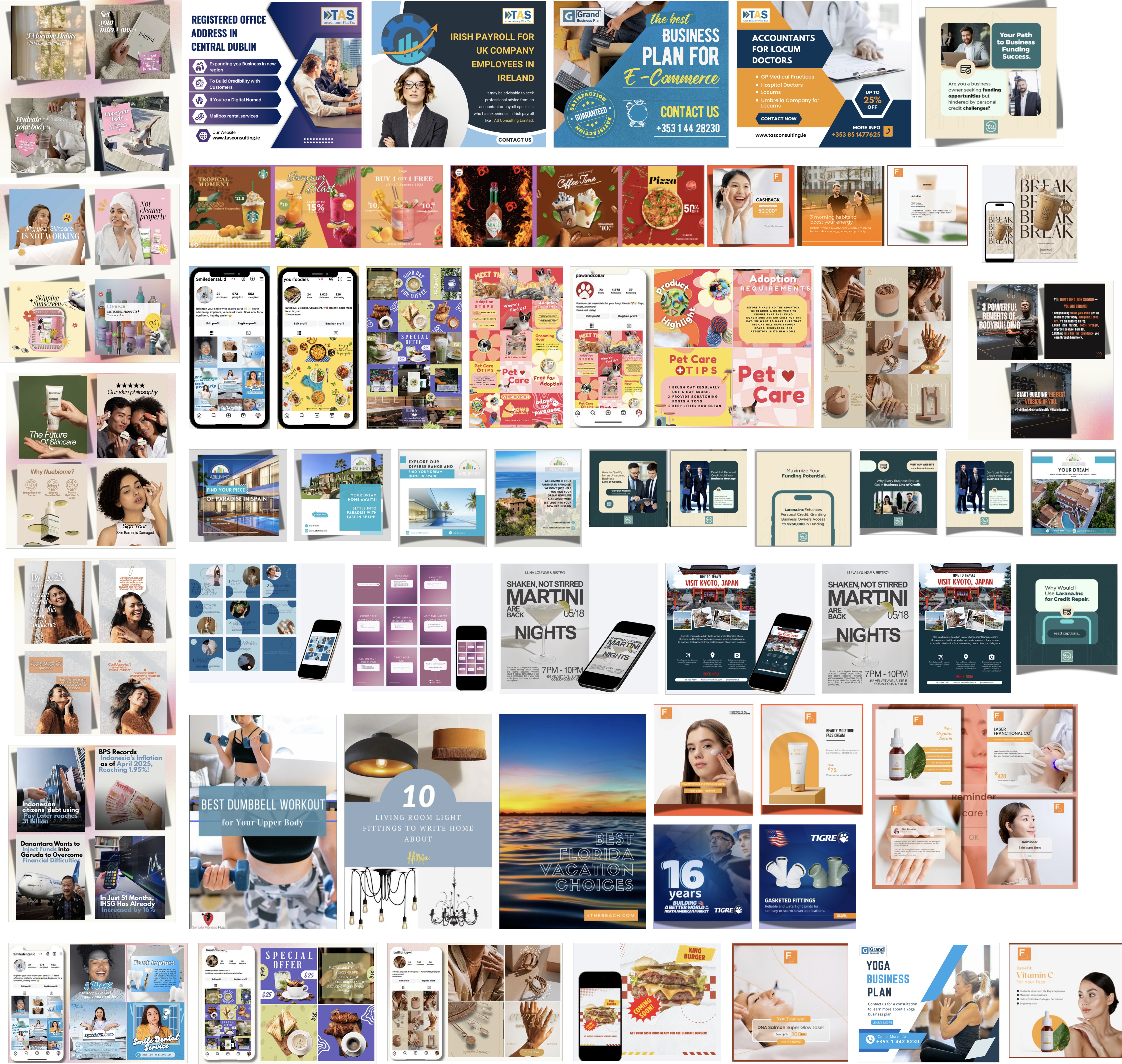 Tous les visuels sont créés sur mesure à l’aide des outils Canva et Adobe — et entièrement adaptés à votre marque.